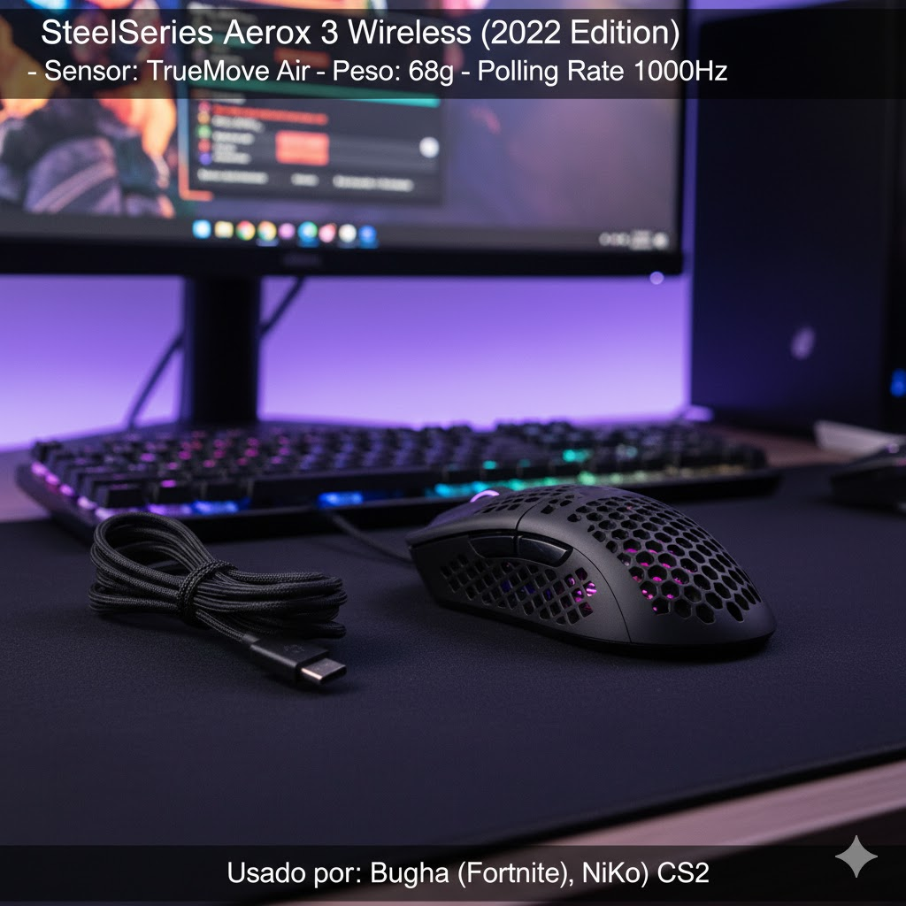 Por que ele é ótimo: O Aerox 3 Wireless combina um design ultraleve com durabilidade e versatilidade. Seu sensor TrueMove Air oferece rastreamento de alta precisão, e a resistência à água e poeira o torna ideal para jogadores que buscam um mouse robusto. A dupla conectividade (2.4GHz e Bluetooth) é um bônus para quem alterna entre dispositivos.