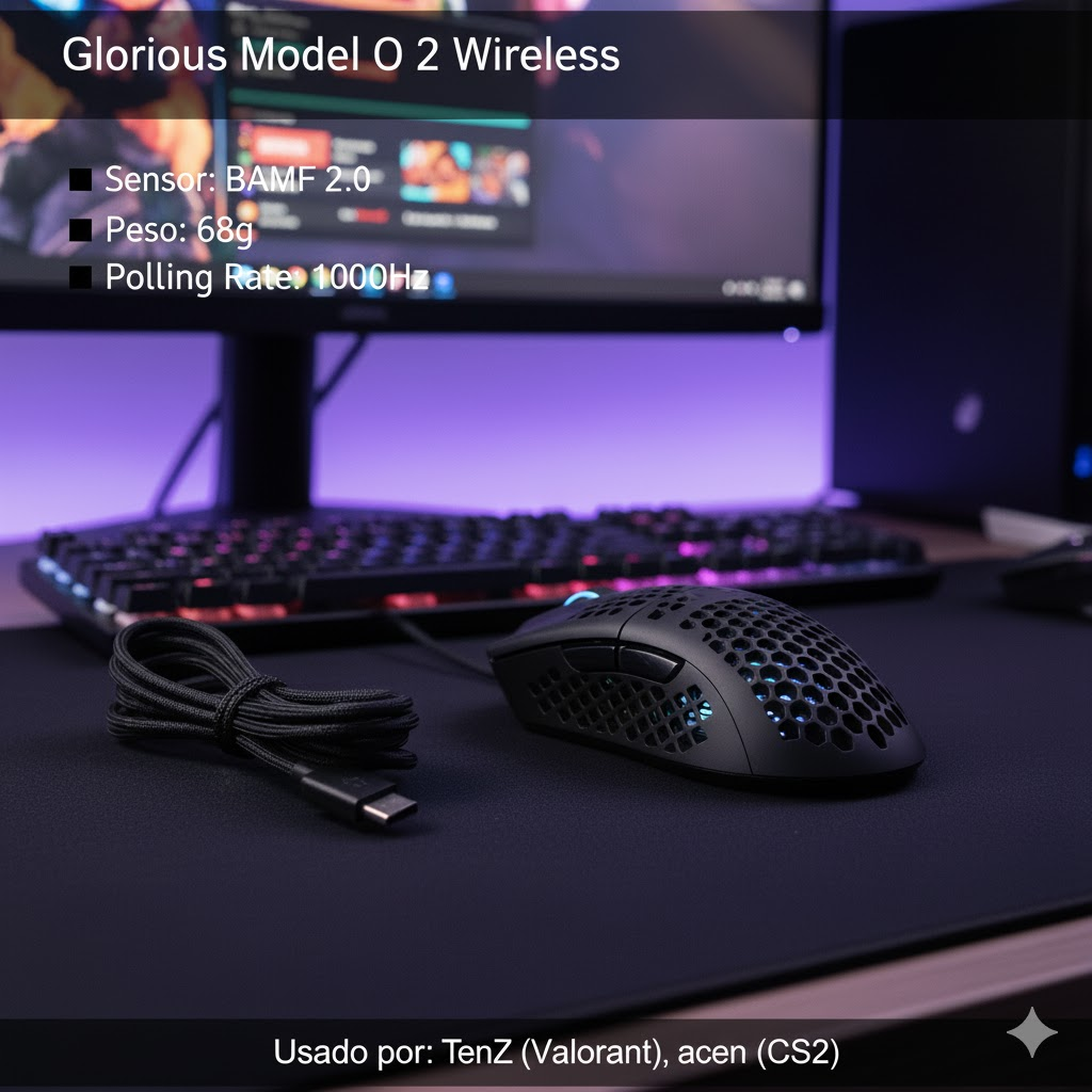 Por que ele é ótimo: O Glorious Model O 2 Wireless aprimora o sucesso do seu antecessor, oferecendo um sensor mais potente e uma bateria de longa duração. Seu design simétrico com furos em colmeia o torna extremamente leve e confortável para a maioria dos tipos de pegada. É uma excelente opção para quem busca um mouse leve, responsivo e com ótima autonomia.
