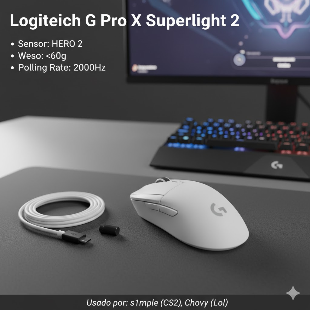 Por que ele é ótimo: O G Pro X Superlight 2 é a escolha de muitos profissionais por sua leveza extrema e desempenho sem falhas. Seu sensor HERO 2 oferece precisão impecável, e a conectividade Lightspeed garante que você nunca perca um movimento. É ideal para jogos que exigem movimentos rápidos e precisos.